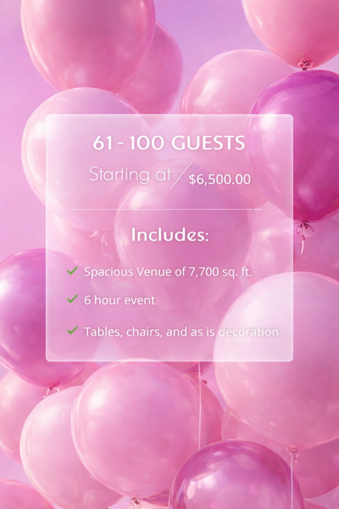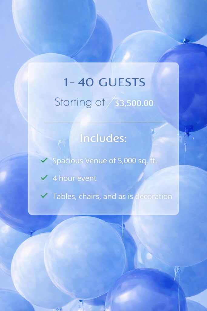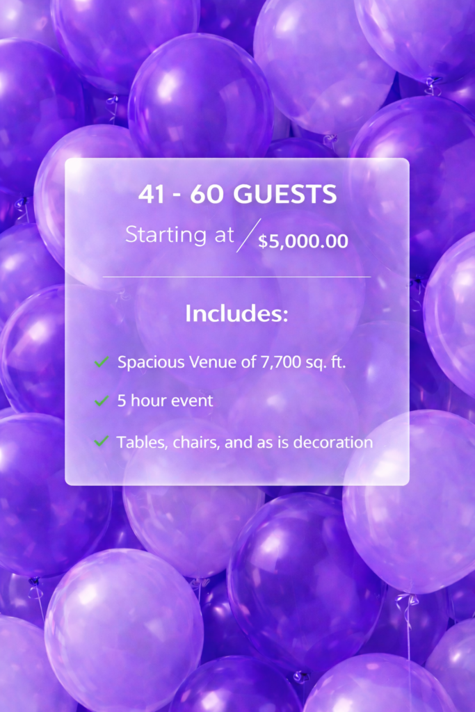 NEED ADD ONS? We can provide you with additional time, guests, catering, and more to make this the event of your dreams. Simply: CALL US. TEXT US. BOOK A TOUR.